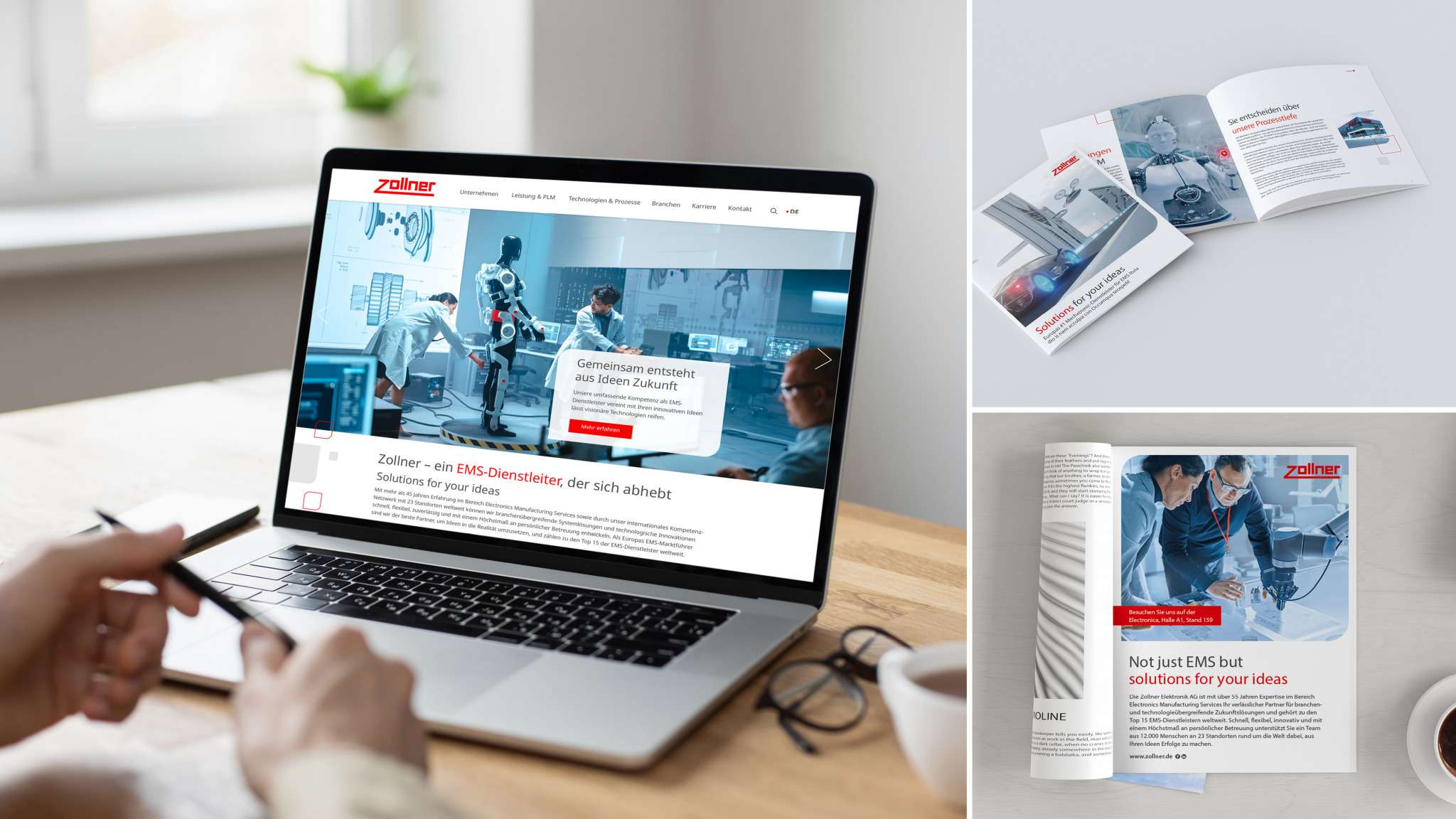 Neues Corporate Design für Europa’s Marktführer! Für unseren weltweit tätigen Kunden Zollner Elektronik GmbH durften wir im Rahmen einer Designüberarbeitung ein umfangreiches CD-Manual umsetzen, welches für Zollner die Basis für die Sicherstellung eines weltweit einheitlichen und professionellen Markenauftritts darstellt. Neben den Grundlagen wie Logo- und Farbdefinitionen waren die Ausarbeitung der Bildsprache, die Konzeption der Layout- und Gestaltungselemente inklusive Konzeption von Icons, Teil des Projekts. Außerdem waren die Umsetzung von Print-Materialien (z.B. Image-Anzeigen, HR-Anzeigen, Broschüre, Flyer), der Aufbau eines umfangreichen Power-Point-Masters, sowie Vorgaben für Videos und Social-Media Bestandteil des umfangreichen Projekts.